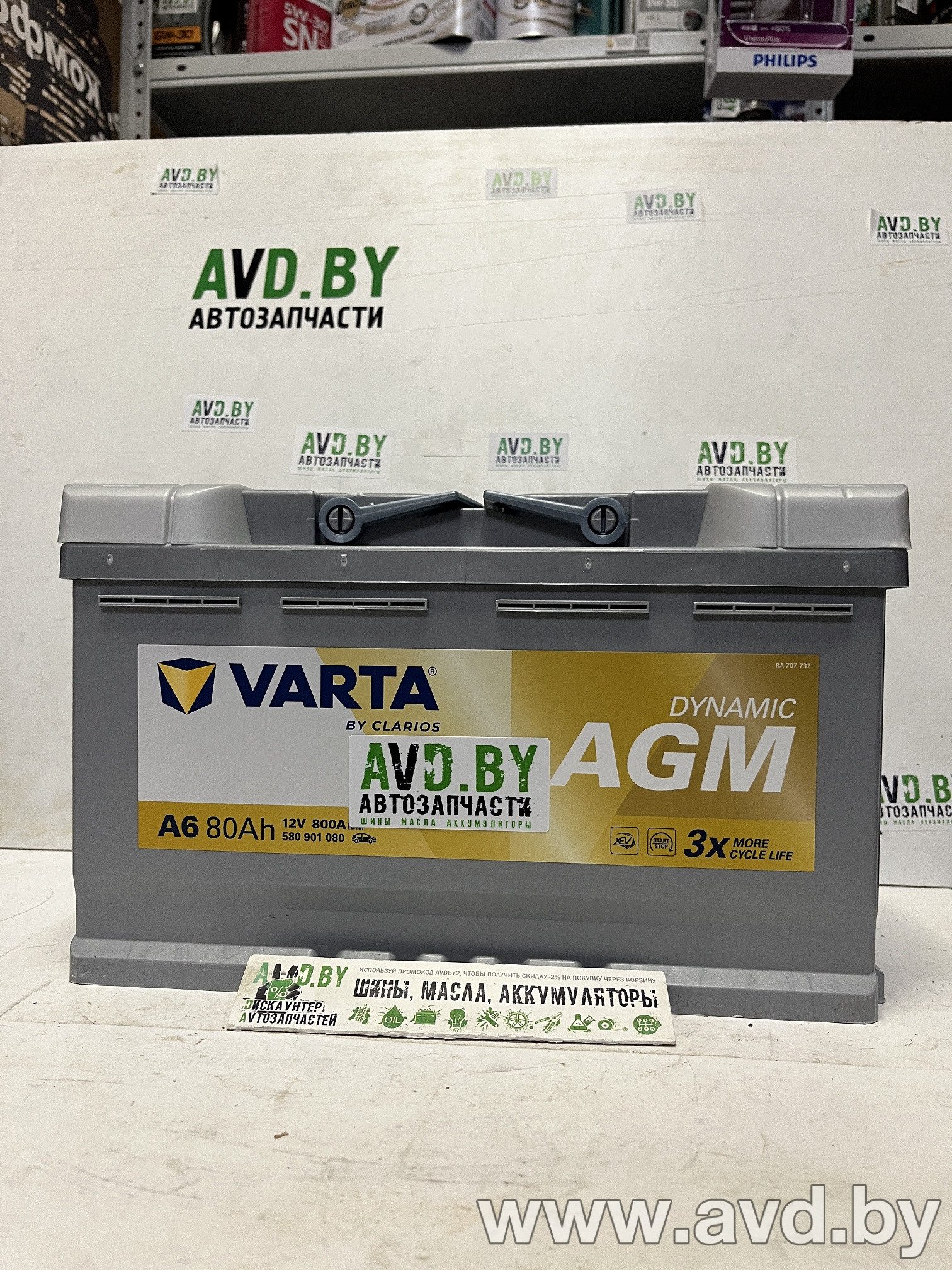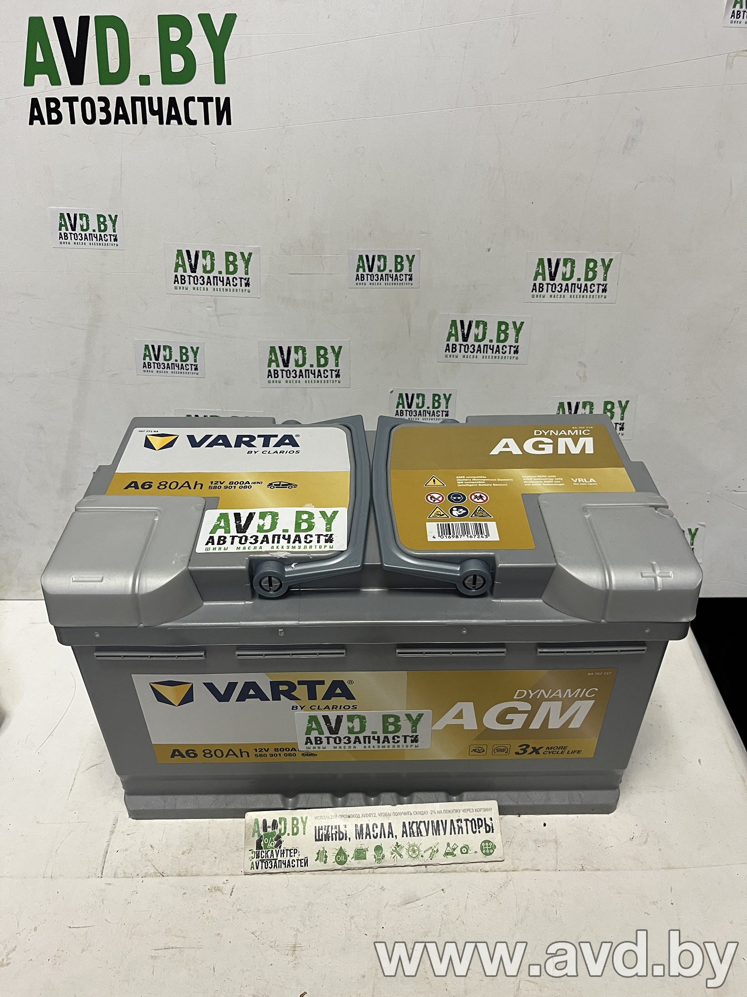 Дискаунтер автозапчастей AVD.BY предлагает по наилучшим ценам автомобильные аккумуляторы популярных иностранных и отечественных производителей. Широкий ассортимент аккумуляторов с различными параметрами позволяют найти нужный товар. Автомобильный аккумулятор Varta Silver Dynamic AGM 580 901 080 (80 А·ч) и другие товары можно заказать с доставкой в любой город Беларуси, получив гарантию и скидки на следующие покупки!
