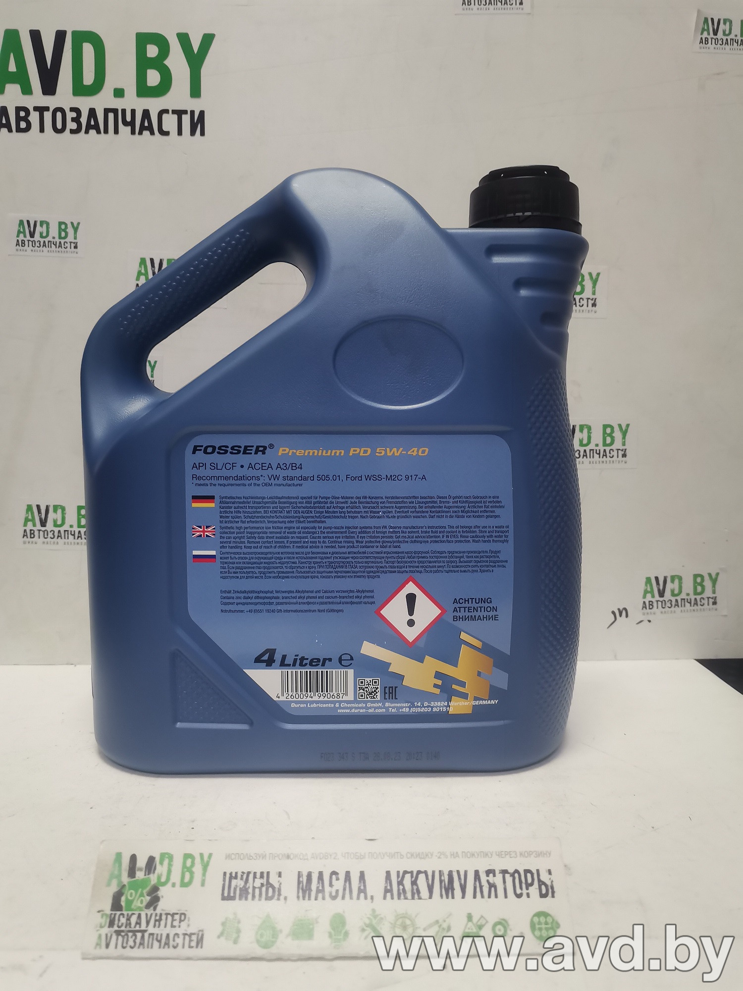 Дискаунтер автозапчастей AVD.BY реализует по оптимальным ценам моторные масла ведущих иностранных производителей. Богатый ассортимент масел различных объемов и допусков позволяет подобрать моторное масло для Вашего авто. Купить Моторное масло Fosser Premium PD 5W-40 4л в Минске. и другие товары можно заказать с доставкой в любой город Беларуси, получив гарантию и скидки на следующие покупки!